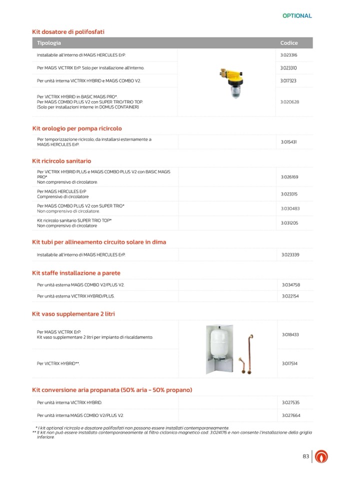 * I kit optional ricircolo e dosatore polifosfati non possono essere installati contemporaneamente.