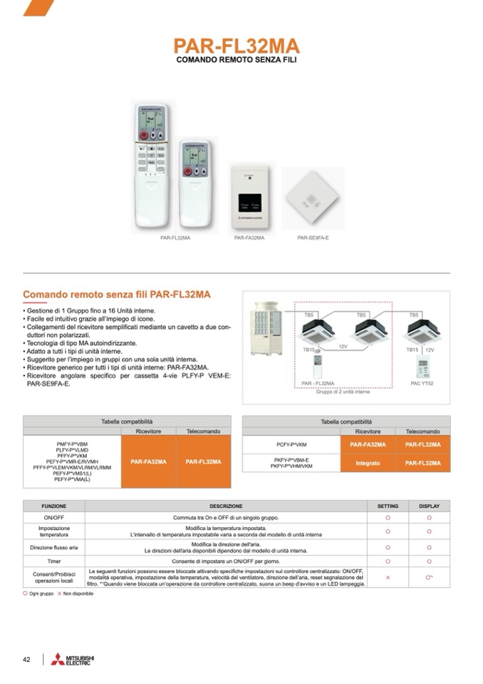 • Ricevitore generico per tutti i tipi di unità interne: PAR-FA32MA.
