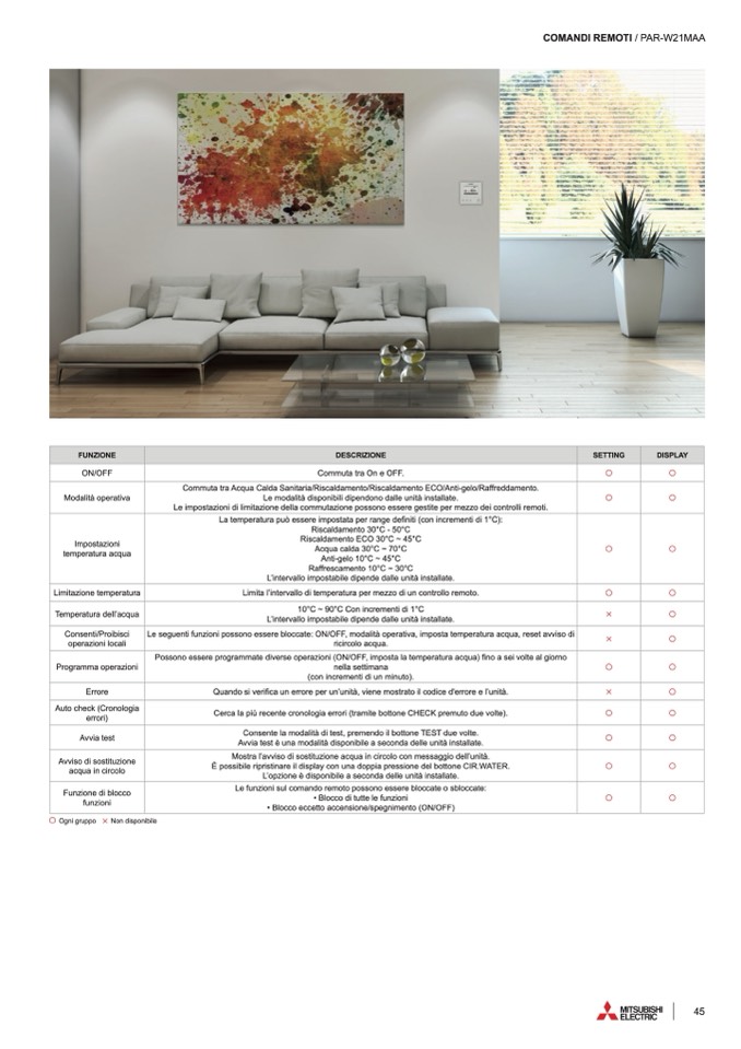 Commuta tra Acqua Calda Sanitaria/Riscaldamento/Riscaldamento ECO/Anti-gelo/Raffreddamento.