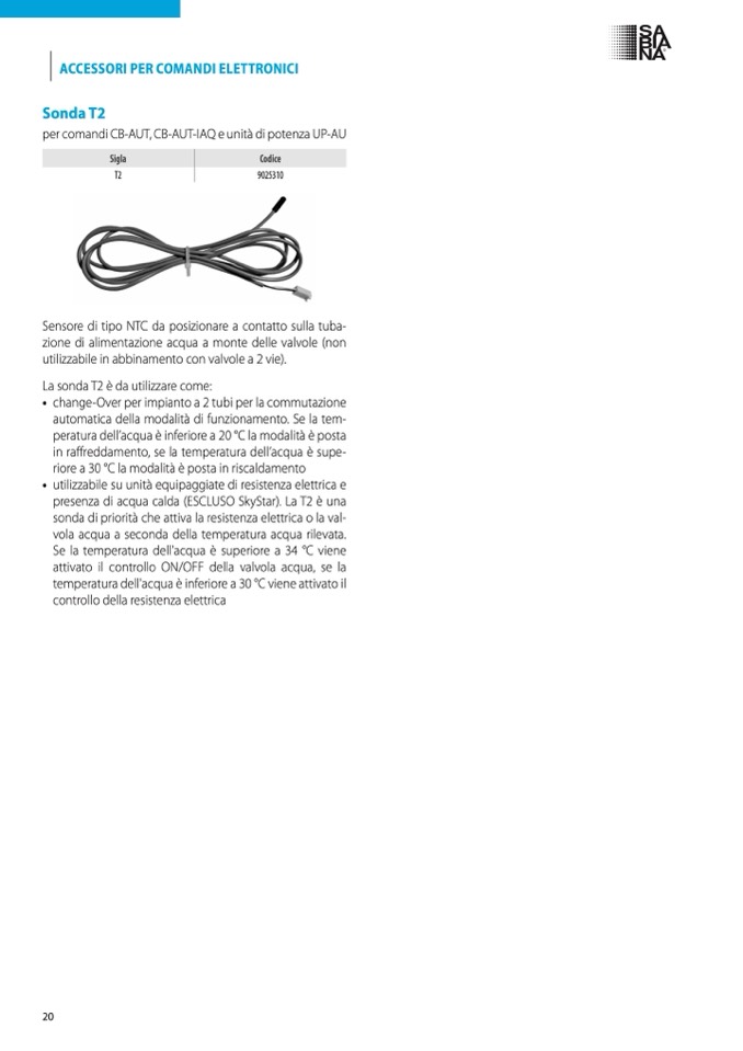 presenza di acqua calda (ESCLUSO SkyStar). La T2 è una