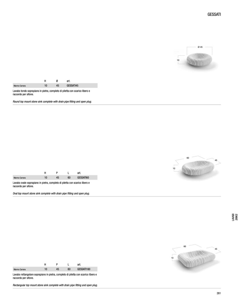 Lavabo ovale soprapiano in pietra, completo di piletta con scarico libero e