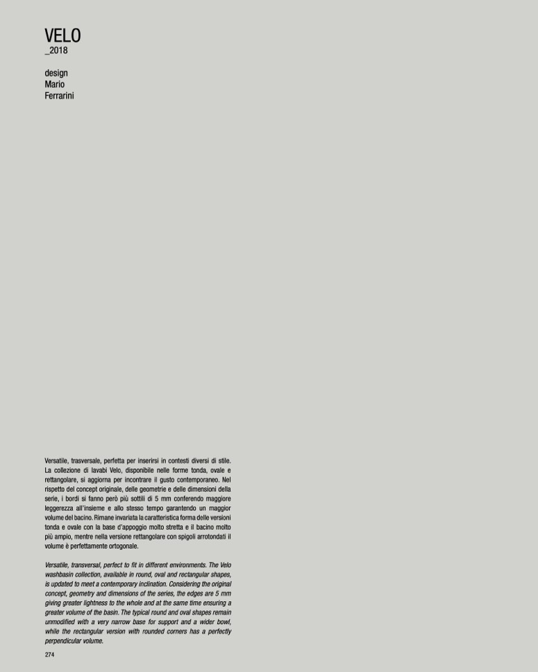 La collezione di lavabi Velo, disponibile nelle forme tonda, ovale e