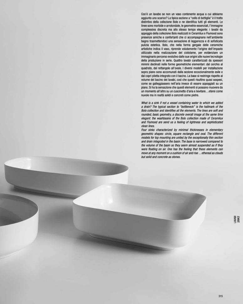 appoggio della collezione Bolo realizzati in Ceramilux e Flumood sono