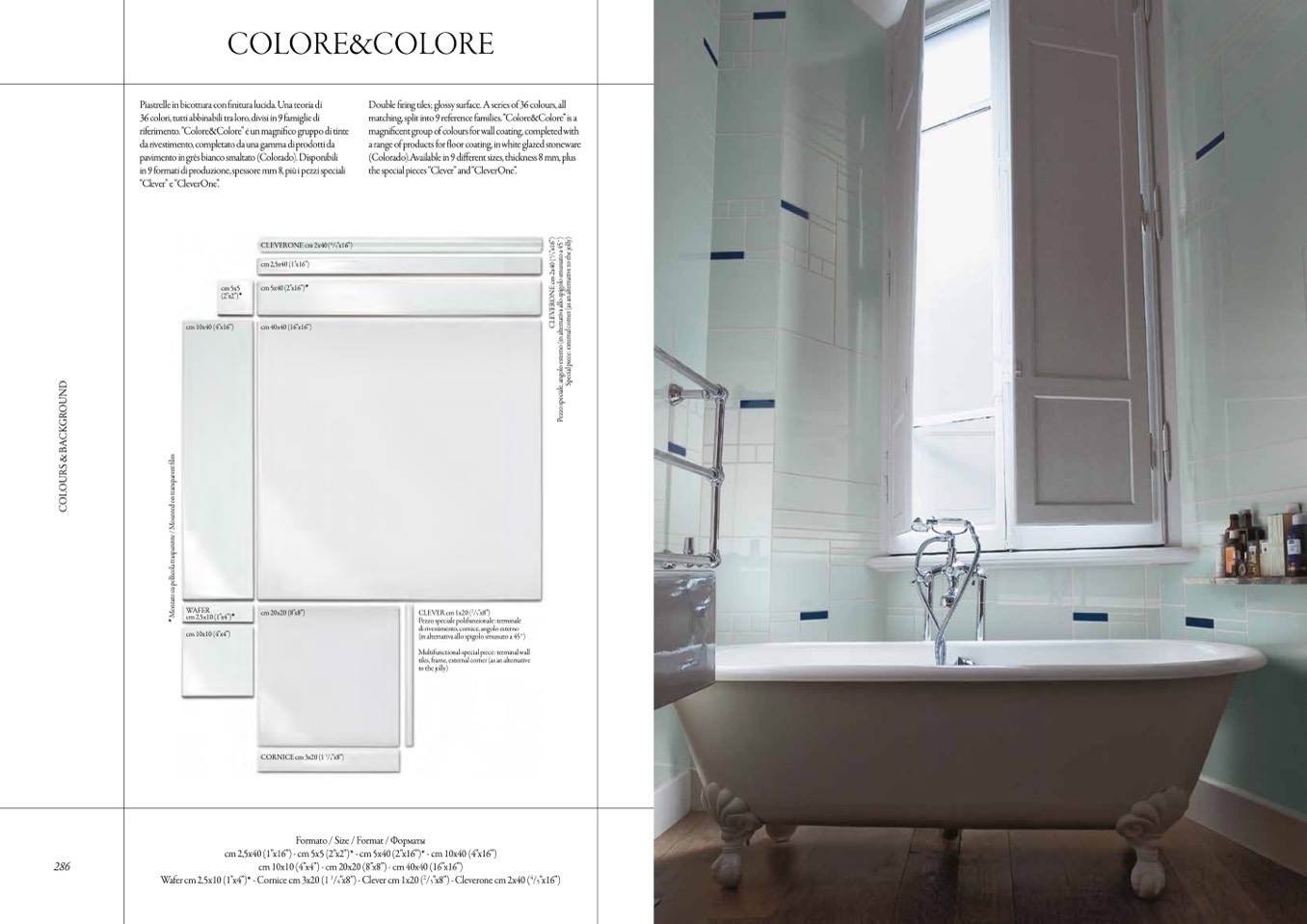 in 9 formati di produzione, spessore mm 8, più i pezzi speciali