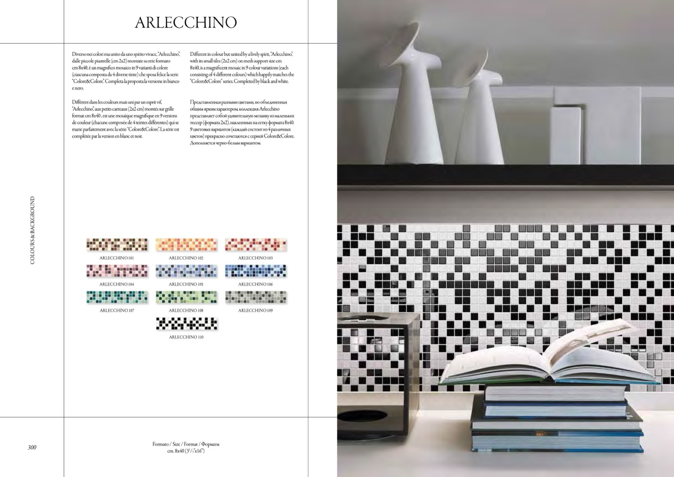 8x40, is a magnificent mosaic in 9 colour variations (each
