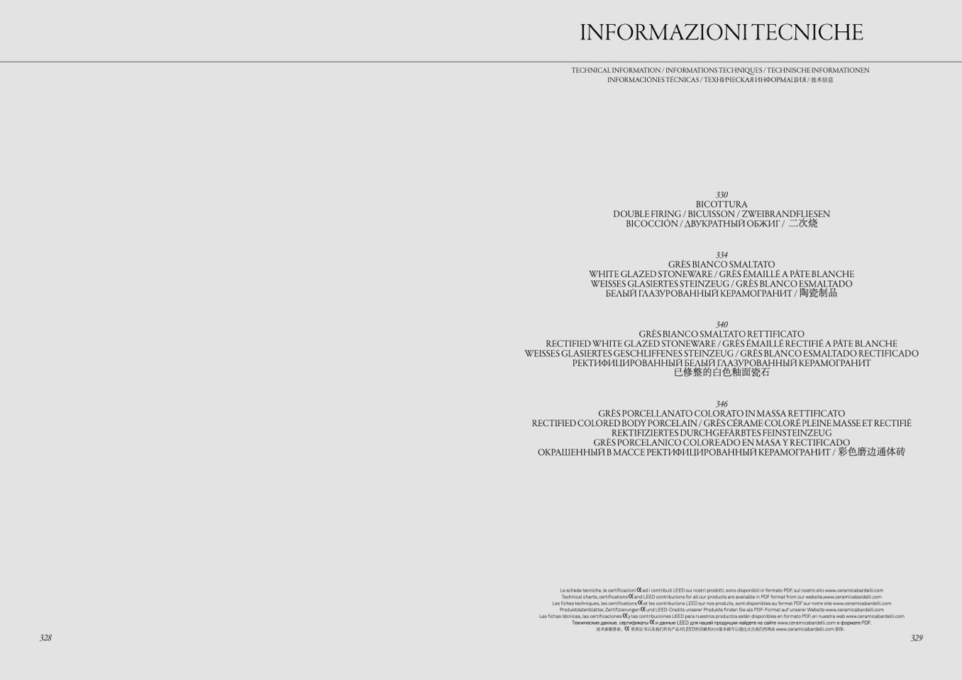 Technical charts, certifications and LEED contributions for all our products are available in PDF format from our website,www.ceramicabardelli.com