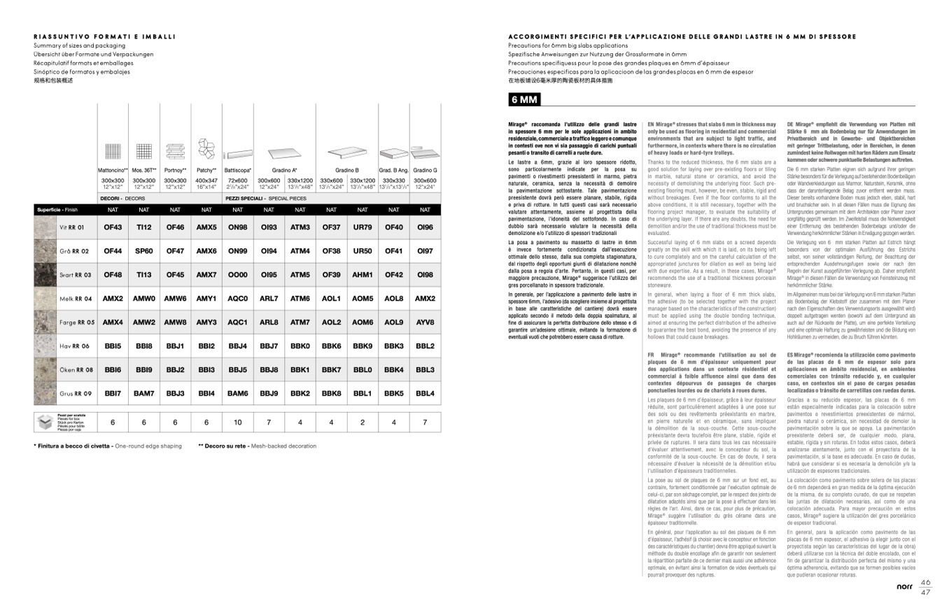 ACCORGIMENTI SPECIFICI PER L’APPLICAZIONE DELLE GRANDI LASTRE IN 6 MM DI SPESSORE