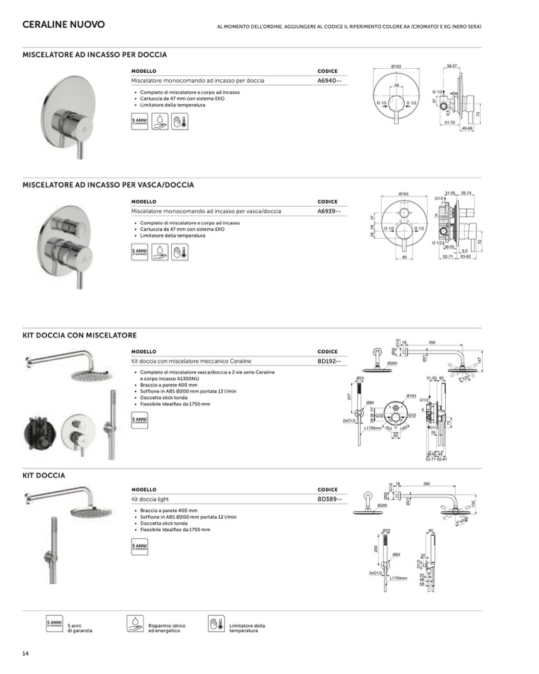 • Completo di miscelatore vasca/doccia a 2 vie serie Ceraline