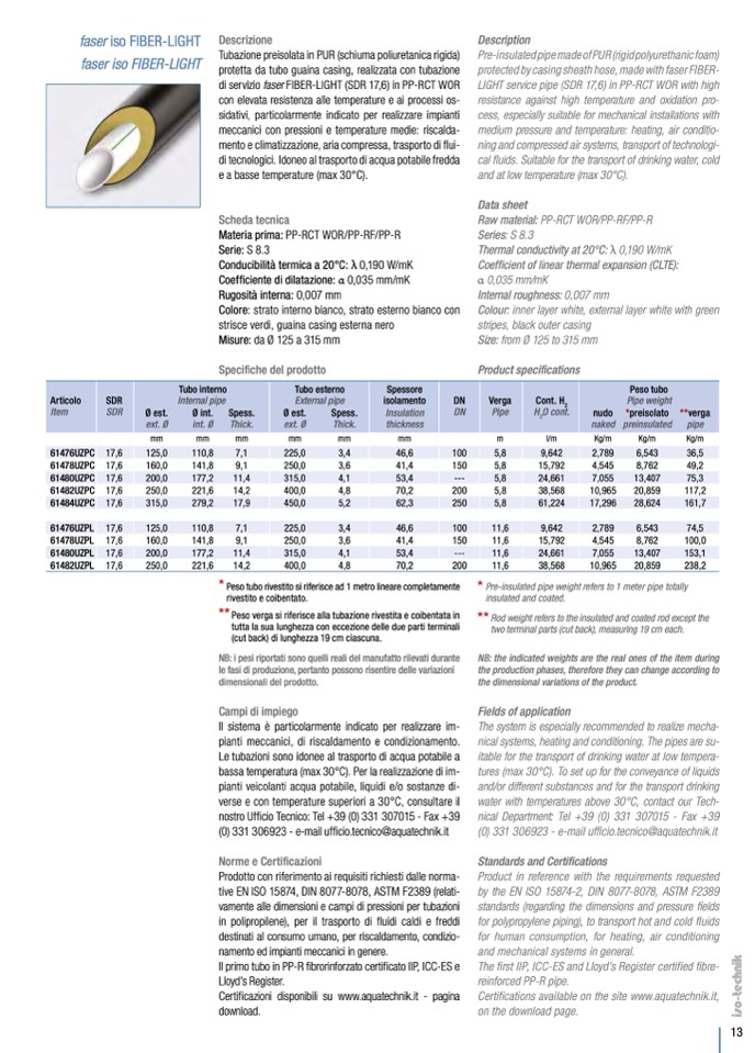 di servizio faser FIBER-LIGHT (SDR 17,6) in PP-RCT WOR