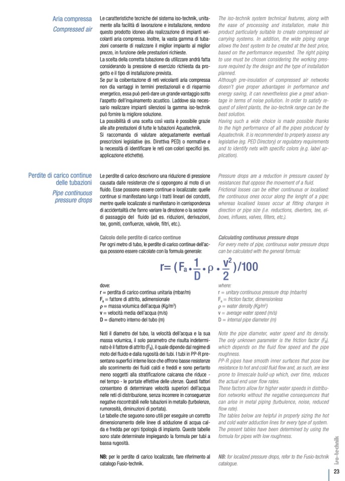 Per ogni metro di tubo, le perdite di carico continue dell’ac-