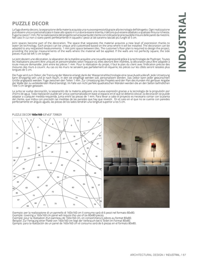 Esempio: per la realizzazione di un pannello di 160x160 cm il consumo sarà di 6 pezzi nel formato 80x80.