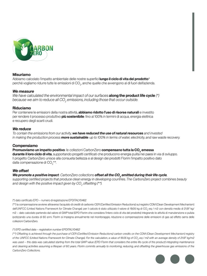Il progetto CarbonZero unisce alla consueta bellezza e al design dei prodotti Florim l’impatto positivo dat