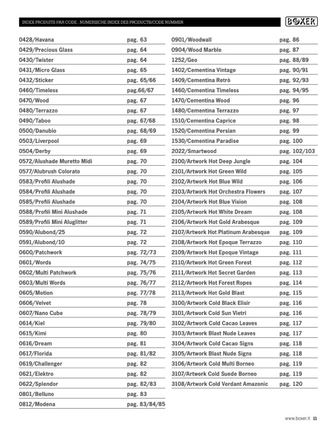INDEX PRODUITS PAR CODE . NUMERISCHE INDEX DES PRODUCTS/CODE NUMMER