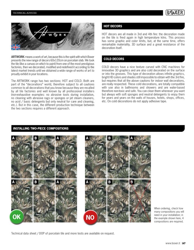 presents the new range of decors 60x120cm on porcelain slab. We took
