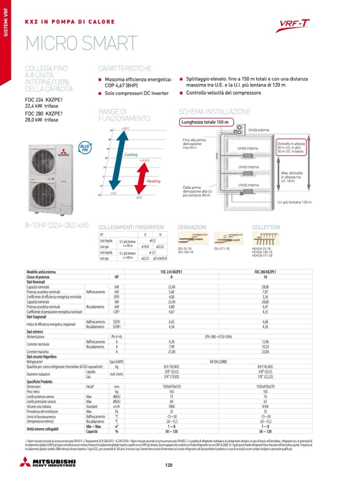 1. Valore misurato secondo la norma armonizzata EN14511. 2. Regolamenti UE N.206/2012 - N.2281/2016 - Valore misurato secondo la norma armonizzata EN14825. 3. La perdita di refrigerante contribuisce al cambiamento climatico. In caso di rilascio nell’atmosfera, i refrigeranti con un potenziale di