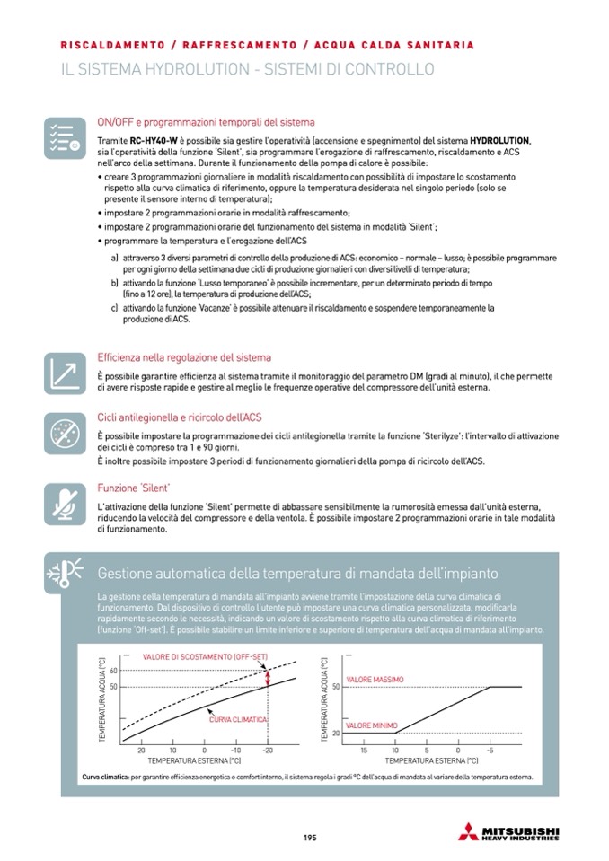 funzionamento. Dal dispositivo di controllo l’utente può impostare una curva climatica personalizzata, modificarla