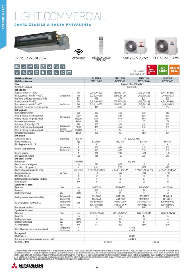 1. Valore misurato secondo la norma armonizzata EN14511. 2. Regolamento UE N.206/2012 - - Valore misurato secondo la norma armonizzata EN14825. 3. Regolamento Delegato UE N.626/2011 relativo alla nuova etichettatura indicante il consumo di energia