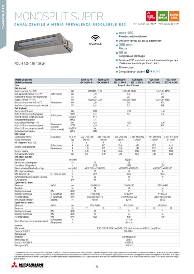 Specifiche unità esterna