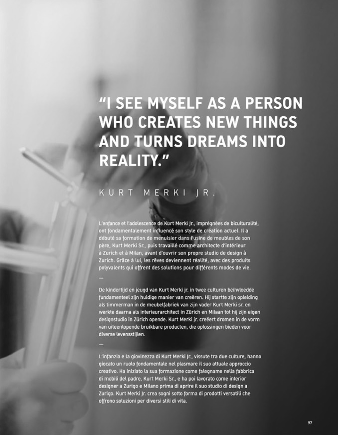 designstudio in Zürich opende. Kurt Merki jr. creëert dromen in de vorm
