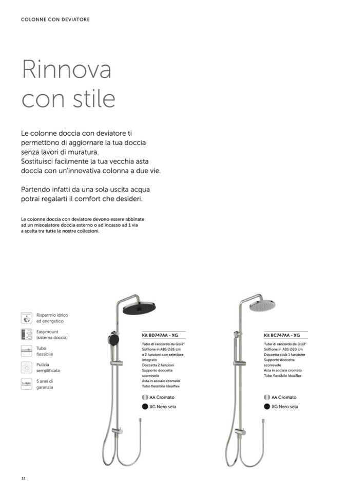 Le colonne doccia con deviatore devono essere abbinate