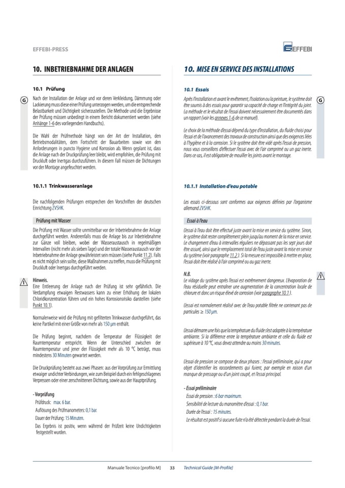 Die Prüfung mit Wasser sollte unmittelbar vor der Inbetriebnahme der Anlage