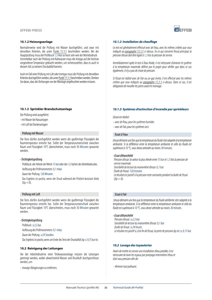 Pression d’essai: ≥2,5 bar.