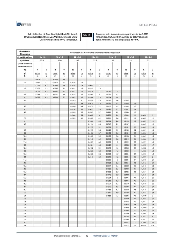 Edelstahlrohre für Gas (Rauhigkeit k= 0,0015 mm).