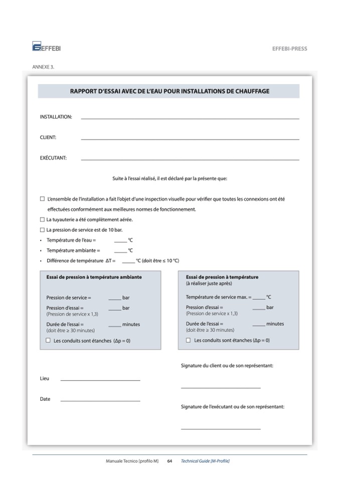 • Différence de température ∆T = _____ °C (doit être ≤ 10 °C)
