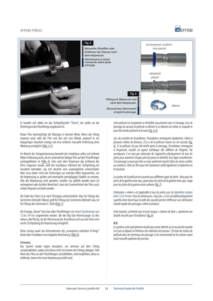 Reste des Films an den Pressfittingen zurückbleiben, wird empfohlen, diese zu