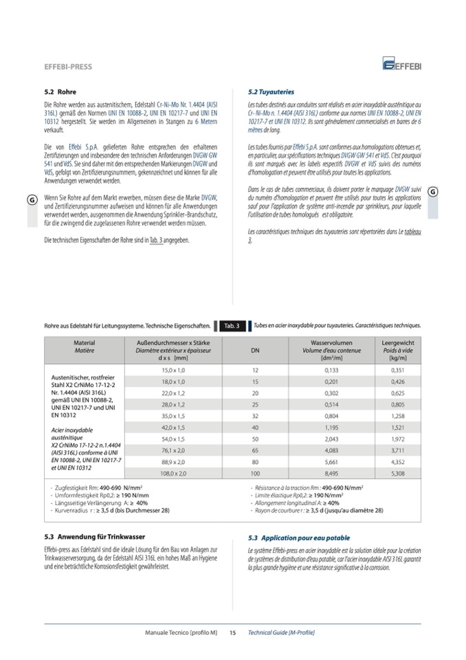 Die von Effebi S.p.A. gelieferten Rohre entsprechen den erhaltenen