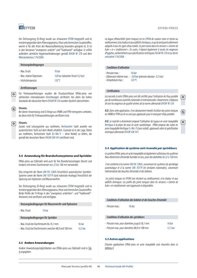 Le système Effebi-press en acier inoxydable est également utilisé pour les systèmes
