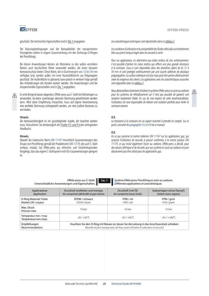 Einsatz von Pressfittings gemäß der Produktnorm UNI 11179, die auch C-Stahl