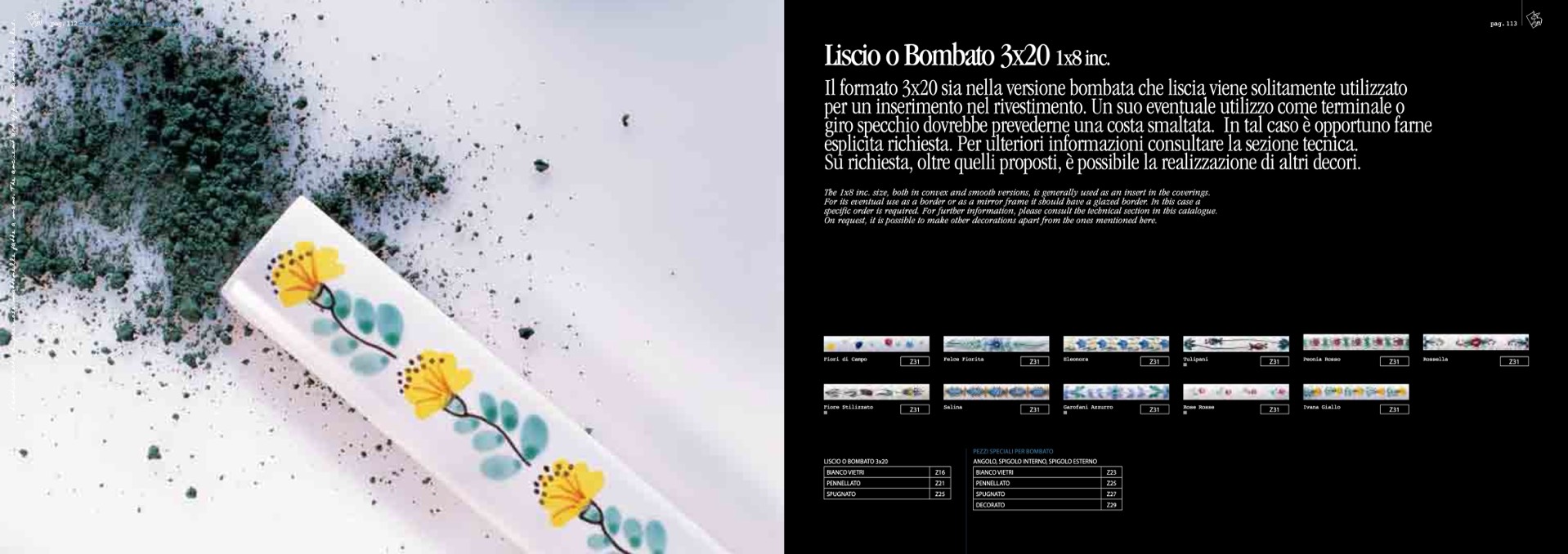 The 1x8 inc. size, both in convex and smooth versions, is generally used as an insert in the coverings.