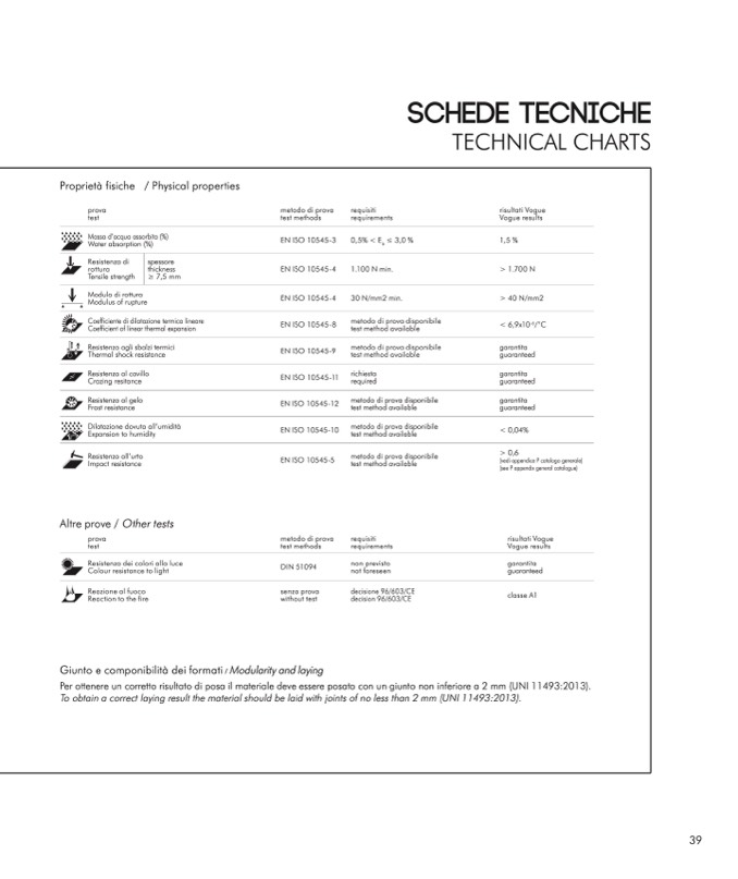 Per ottenere un corretto risultato di posa il materiale deve essere posato con un giunto non inferiore a 2 mm (UNI 11493:2013).