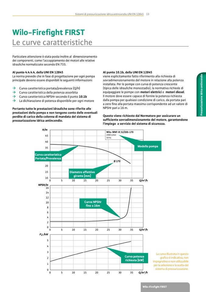 installata. Per le pompe con curva di potenza crescente