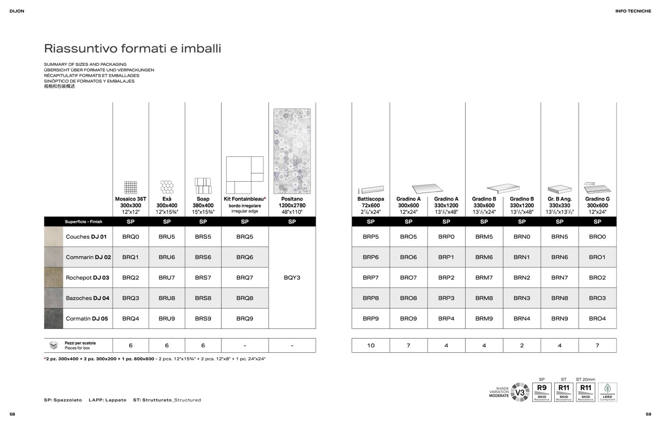 SUMMARY OF SIZES AND PACKAGING