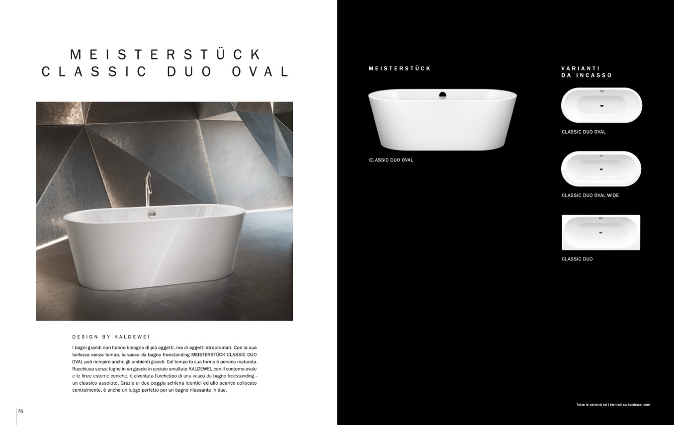 Racchiusa senza fughe in un guscio in acciaio smaltato KALDEWEI, con il contorno ovale