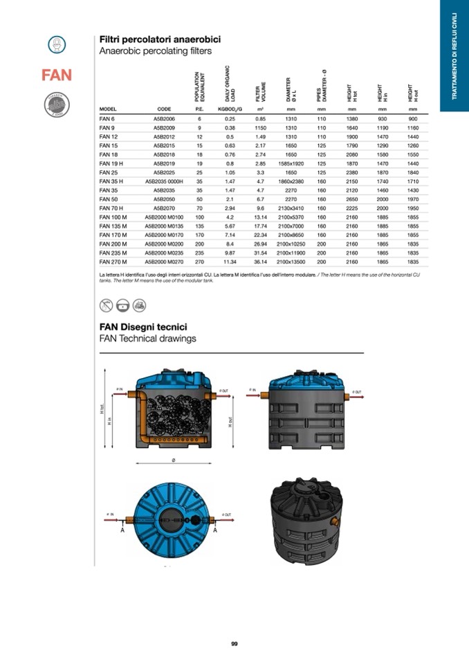La lettera H identifica l’uso degli interri orizzontali CU. La lettera M identifica l’uso dell’interro modulare. / The letter H means the use of the horizontal CU