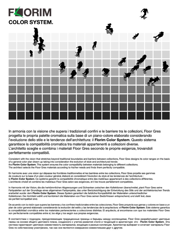erarbeitet wurde: dem Florim Color System. Dieses System garantiert die farbliche Kompatibilität der Materialien unterschiedlicher