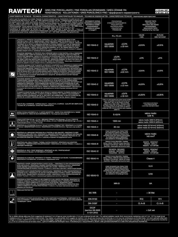 di controllo previsti dalla norma E.N. 14411 - ISO 13006. Appendice G gruppo B1a UGL. / Unglazed porcelain stoneware slabs.
