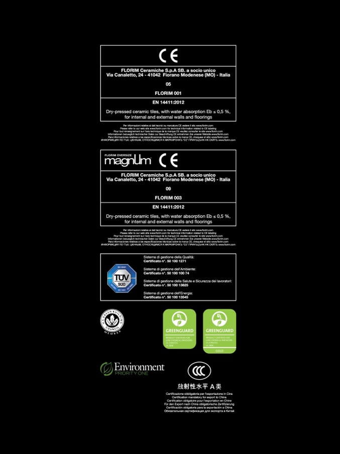 Informationen bezueglich technischer Daten zur Beschriftung CE entnehmen Sie unserer Website www.florim.com