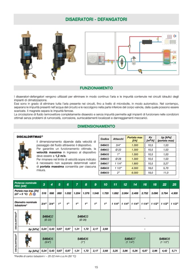 separano le impurità presenti nell’acqua del circuito e le raccolgono nella parte inferiore del corpo valvola, dalla quale possono esser