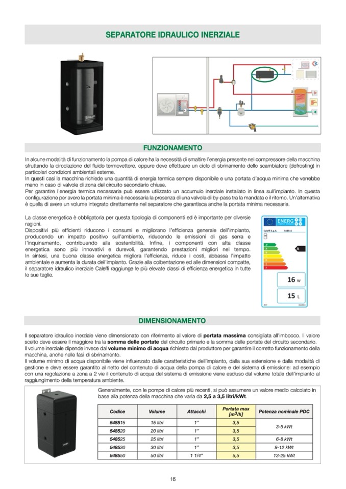 Il volume inerziale dipende invece dal volume minimo di acqua richiesto dal produttore per garantire il corretto funzionamento dell