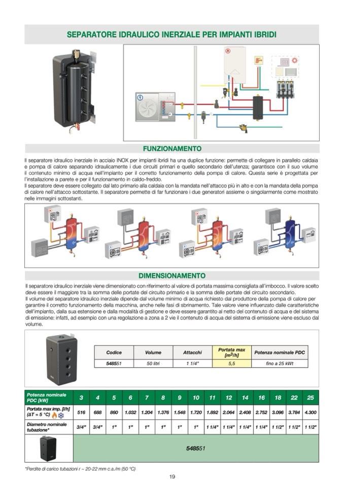 e pompa di calore separando idraulicamente i due circuiti primari e quello secondario dell’utenza; garantisce con il suo volume