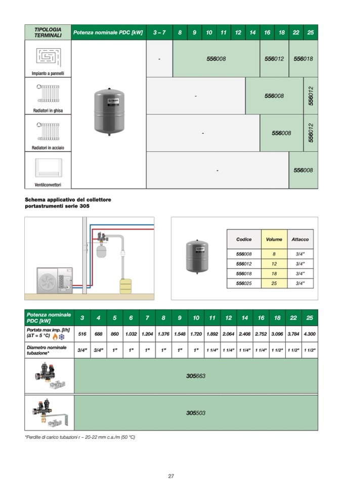 *Perdite di carico tubazioni r ~ 20-22 mm c.a./m (50 °C)