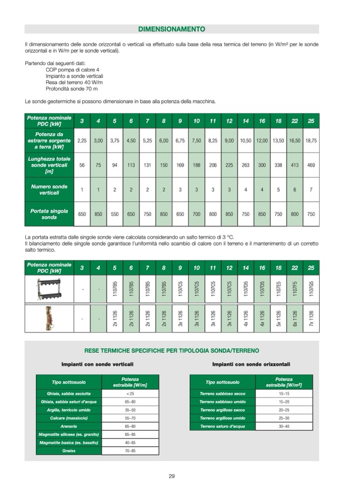 Il dimensionamento delle sonde orizzontali o verticali va effettuato sulla base della resa termica del terreno (in W/m2 per le sond
