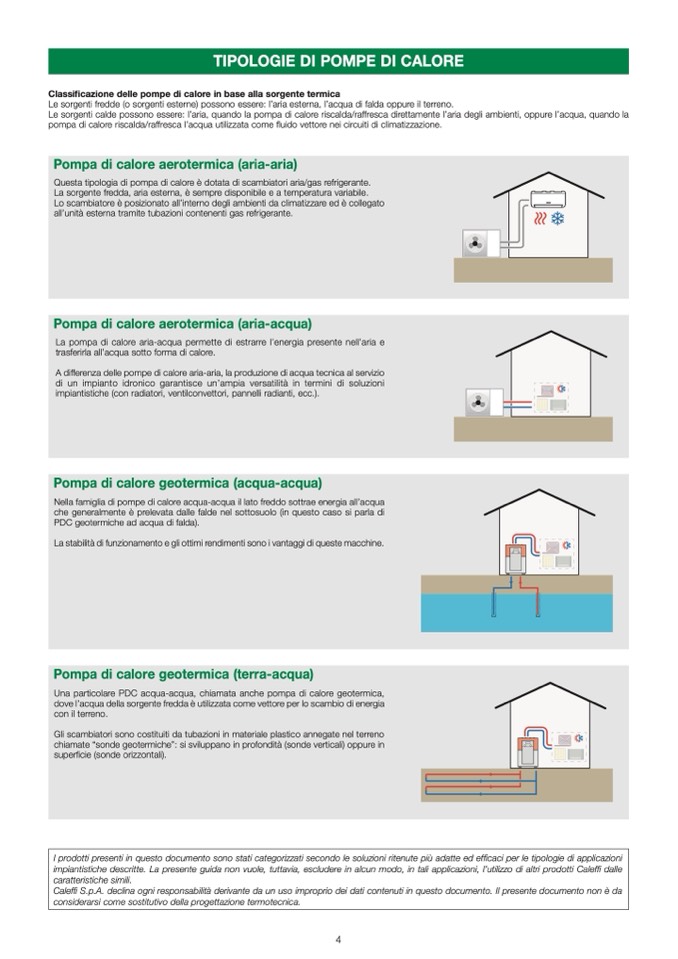 Le sorgenti calde possono essere: l’aria, quando la pompa di calore riscalda/raffresca direttamente l’aria degli ambienti, oppure l’acqua, quando l