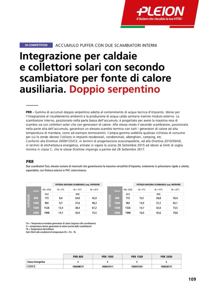 PRR - Gamma di accumuli doppio serpentino adatta al contenimento di acqua tecnica d’impianto. Idonei per