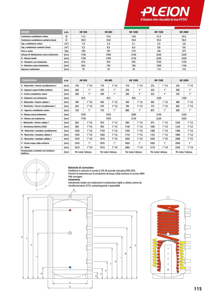 interamente isolato con materassino in poliuretano rigido a calotte, esente da