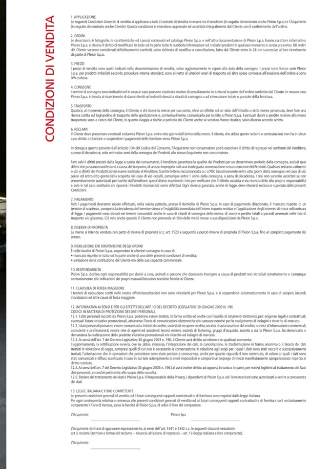 Le seguenti Condizioni Generali di vendita si applicano a tutti i Contratti di Vendita in essere tra il venditore (in seguito denominato anche Pleion S.p.a.) e l’Acquirente
